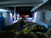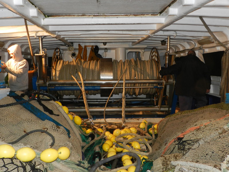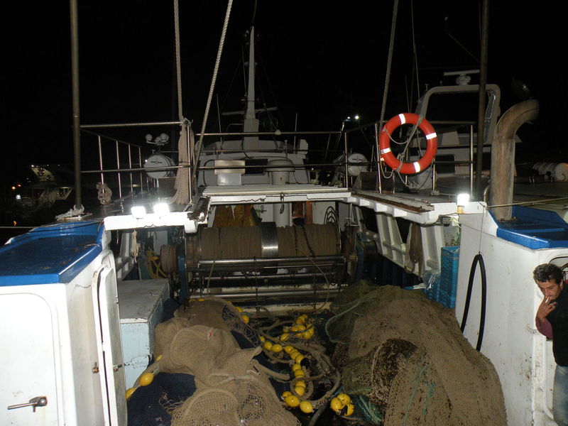 He trobat que havia den dedicar un capítol especial a les arts de pesca, de moment la d’arrossegament és l’única que tinc ben documentada amb nombroses fotografies de nombroses sortides, i aquí teniu aquesta freqüència de fotos que expliquen un dia de pesca d’arrossegament, des de la sortida del vaixell, passant per la feina, els cafès, el dinar i tot el procés de pesca de bou. Cada fotografia du una petita explicació. Vull agrair a la propietat del vaixell: en Pedro Castus, i a tota la tripulació: Joan Castus, el patró; Joan Ramón, segon patró, motorista i cuiner; Xisco Sales, mariner i a vegades cuiner; Mohamed, mariner i als altres que al llarg d’aquests anys han anat i vingut per la paciència de tenir-me allà, a bord, fent fotos i a vegades també fent nosa. Malgrat tot el que pugui tenir de negatiu aquest tipus de pesca, a mi me fascina, cada sortida és una experiència nova i algun descobriment nou i em produeix un enorme respecte i admiració cap a la gent que es passen de dilluns a divendres, si el temps ho permet, dotze hores al mig de la mar, moltes vegades amb unes condicions difícils, complicades i perilloses.