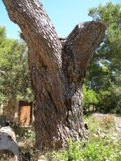 Com no podia ser d’altra manera, el nostre petit municipi també compta amb un bon seguit d’arbres i arbusts singulars. Encara que lo de singular és un concepte bastant ambigu per l’amplitud de particularitats que poden tenir els exemplars. Per això cal que puntualitzem una mica el que jo entenc per singular. Dins aquest concepte hi introdueixo els exemplars monumentals per la seva grandària i port; els que ens marquen un punt geogràfic o ens serveixen per guiar-nos, les fites de camí; els de soques retorçudes, foradades o formes curioses o els més grossos dins la seva espècie. Dins aquest catàleg hi trobarem arbres que han crescut fent-se camí amb altres de la mateixa espècie, altres que han sobreviscut gràcies a l’indult del seus antics propietaris, altres que han crescut solitaris a les voreres dels camins. Alguns exemplars més esponerosos ho son gràcies a l’ajut de la ma de l’home que la mimat, podat i regat, aquests els solem trobar dins jardins privats o públics i en finques de conreu. Com he dit anteriorment, alguns son arbres indultats , aquests solen ser pins que antigament els seus propietaris les guardaven per fer bigues de tafona i no les tallaven. Amb l’arribada de la era industrial aquests pins varen sobreviure i alguns d’ells encara son vius i monumentals. Les alzines, arbre principal del nostre ecosistema, és un altre arbre que hom ha mimat, aquestes eren les que donaven menjar als porcs, i com més grossa era, més aglans feia. Els lledoners varen ser sembrats per aprofitar la seva llenya per fer estris de feina i donar ombra. Les grans oliveres ja les mos sembraren els moros, algunes son mil·lenàries i autèntics monuments. Aquests monuments de vida son