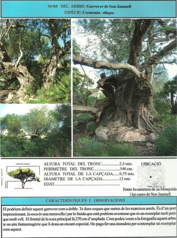 Aquesta és la fitxa original del catàleg d'arbres i arbusts singulars del municipi de Capdepera. Presentar-vos així el catàleg és complicat i molt laboriós, per això ho he simplificat. Però no hi mal que per be no vengui. Dins les fitxes d'aquesta web podreu gaudir d'una major quantitat de fotos de cada exemplar i de la mateixa informació. L'únic que no veureu serà el mapa de situació.
