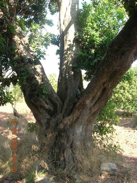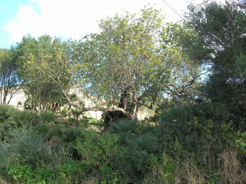 Un altre garrover d’aspecte fantasmagòric que trobam dins Son Jaumell. Sembla que treu dos brancams de les mateixes arrels i un d’ells buit per dintre. Un exemplar que també deu ser molt vell. De port és més grandiós que el que hi ha davant les cases de Son Jaumell.
