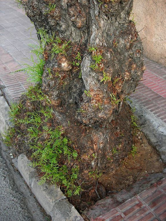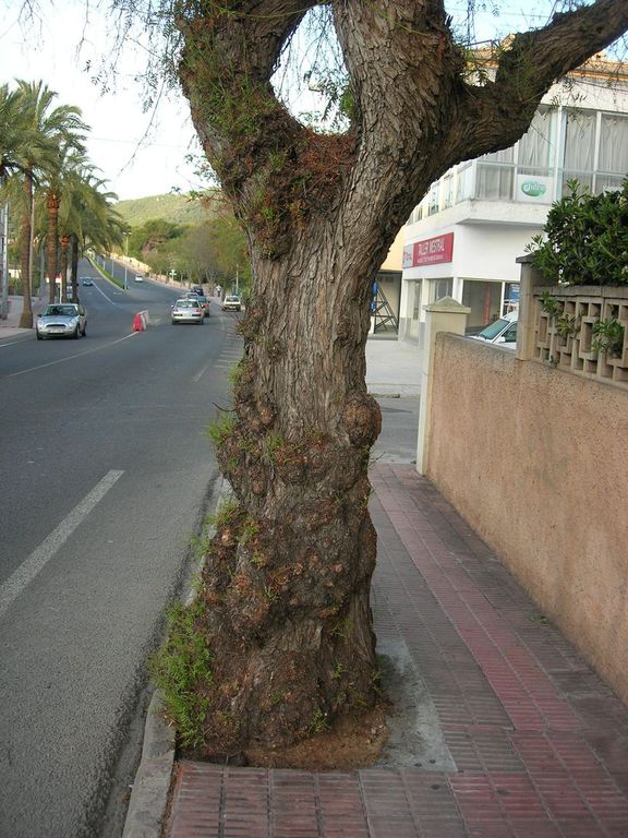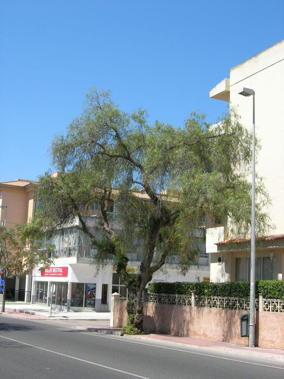 El pebreboner és un arbre d’origen sud-americà d’escorça aromàtica i fruits semblants a les del pebre bo. Aquest de l’autovia és un exemplar molt bonic ja que, com tots aquests arbres, te un tronc molt retorçut i bonyerrut que fa que sigui tot ell una mica espectacular. Jo no se els anys que te sembrat, però pràcticament el recordo gairebé de sempre, dels primers que sembraren quan es va urbanitzar aquests tram de carretera. Com ja he dit altres vegades, tots els arbres de propietat pública, haurien d’estar ja degudament catalogats i l’objectiu d’aquest catàleg és que també es faci amb els de titularitat privada