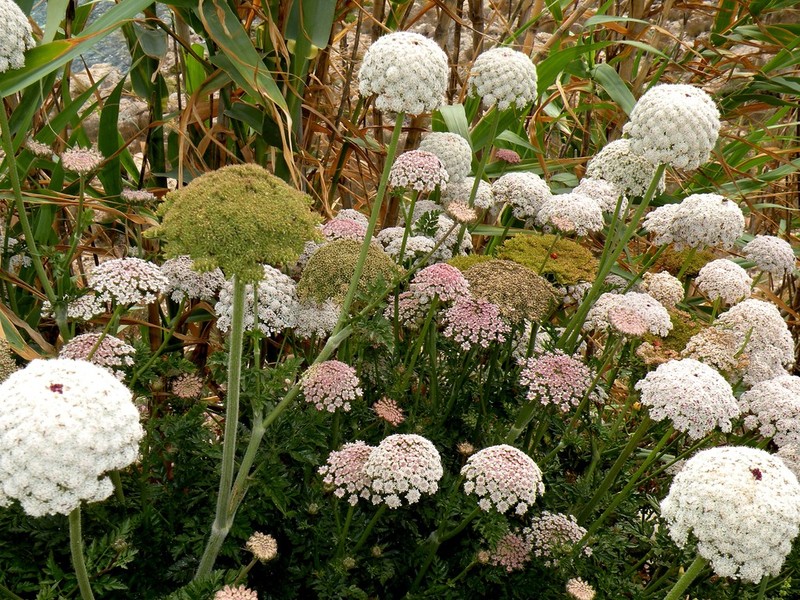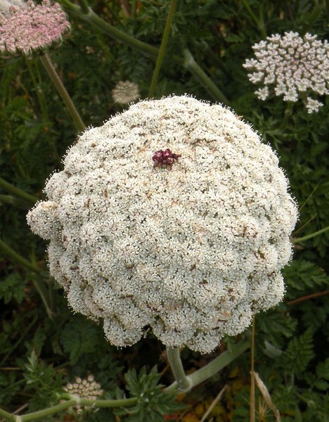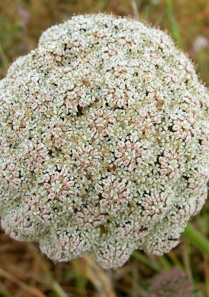 DESCRIPCIÓ DE LA PLANTA: Fulles inferiors pinnatisectes, peciolades. Flors blanques o rosades en umbel·les de 8-40 radis.