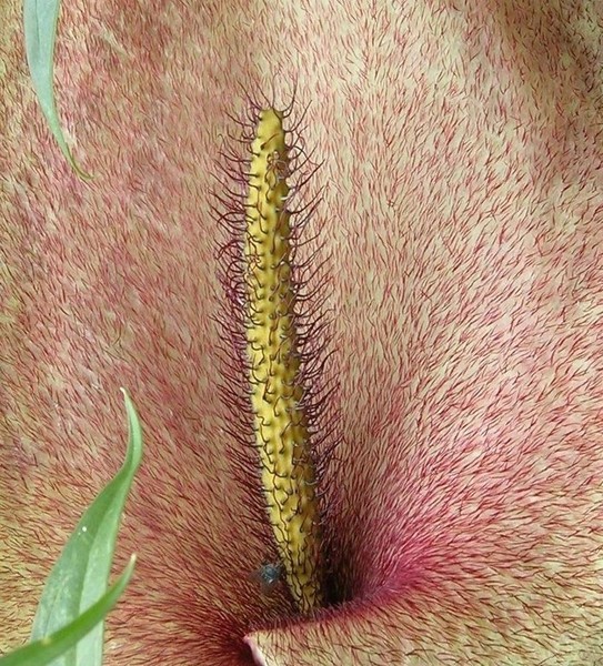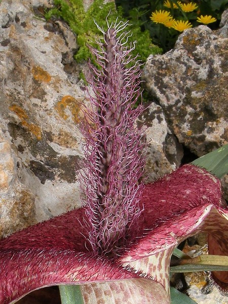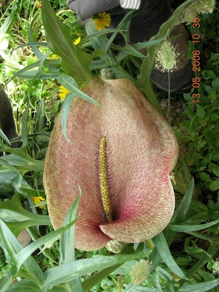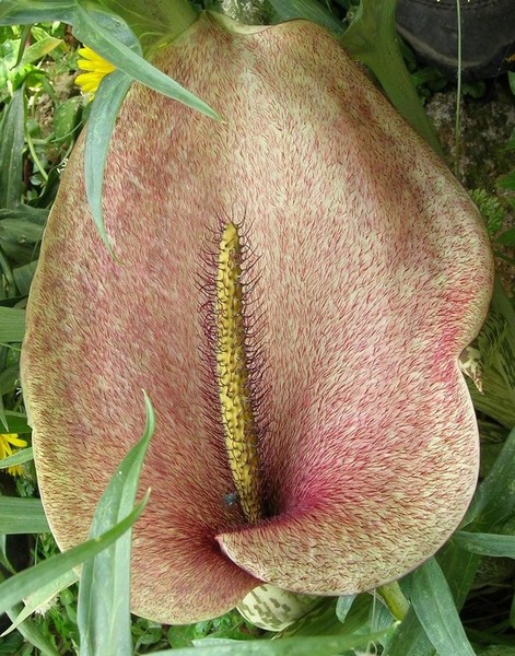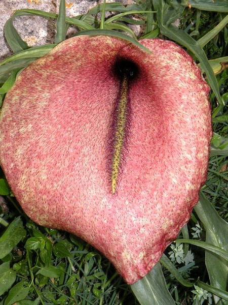 OBSERVACIONS: L’espata fa pudor a carn putrefacta , sistema per atreure les mosques a les que utilitzen per polinitzar altres exemplars.
