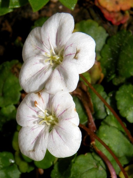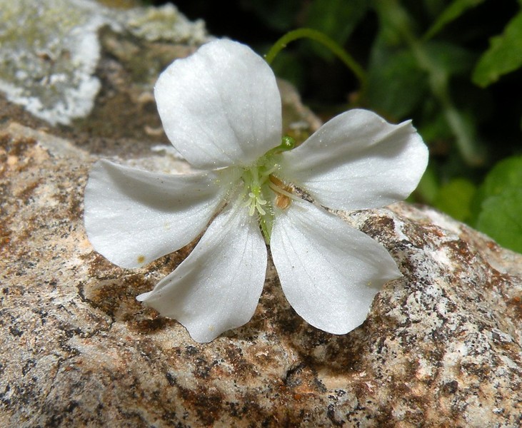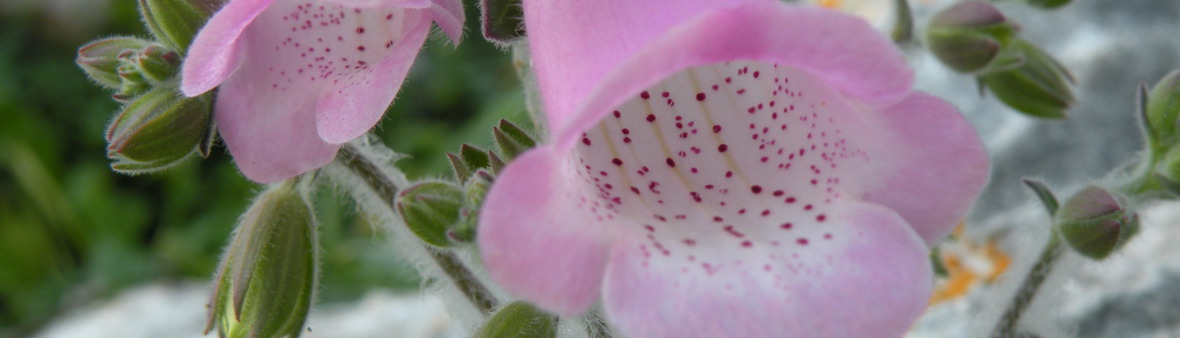 DESCRIPCIÓ DE LA PLANTA:Herba perenne, cespitosa. Fulles en roseta basal, peludes, oval lanceolades amb el marge crenat. Flors amb el tronquet molt llarg, blanques amb estriacions vermelles.