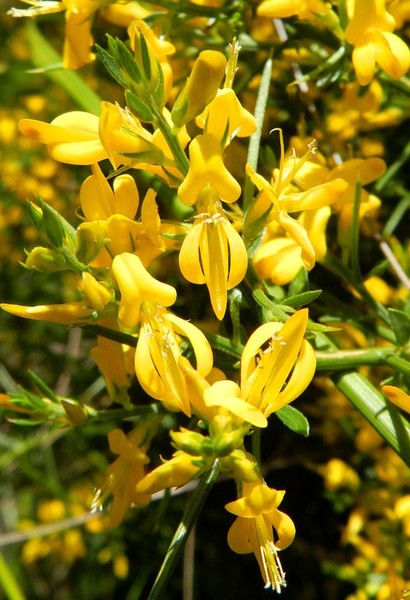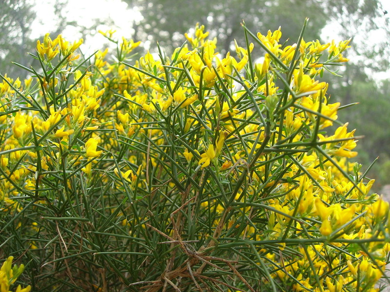 DESCRIPCIÓ DE LA PLANTA:Arbust molt espinós. Fulles peciolulades, simples, linears i glabrescents. Flors pentàmeres grogues. Fruit en llegum