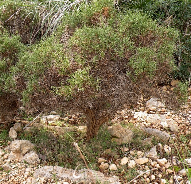 HABITAT:És una planta que necessita sol (heliòfila) i es troba als costers secs i rocosos dels vessants sud dels turons i pugets, sempre més o manco prop de la mar i a altures que al nostre municipi no solen sobrepassar els 150 mts.