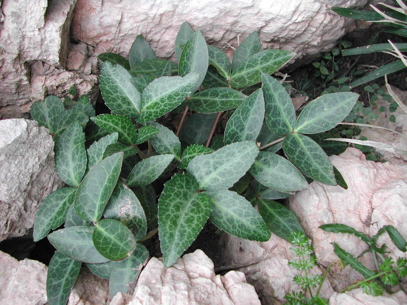DESCRIPCIÓ DE LA PLANTA:Herba rizomatosa sense pels. Fulles amb tres foliols, amb el tronc molt llarg i els lòbuls ovals lanceolats, de color verd fosc amb nerviacions blanquinoses per l’anvers i purpurines pel revers. Les flors no tenen pètals