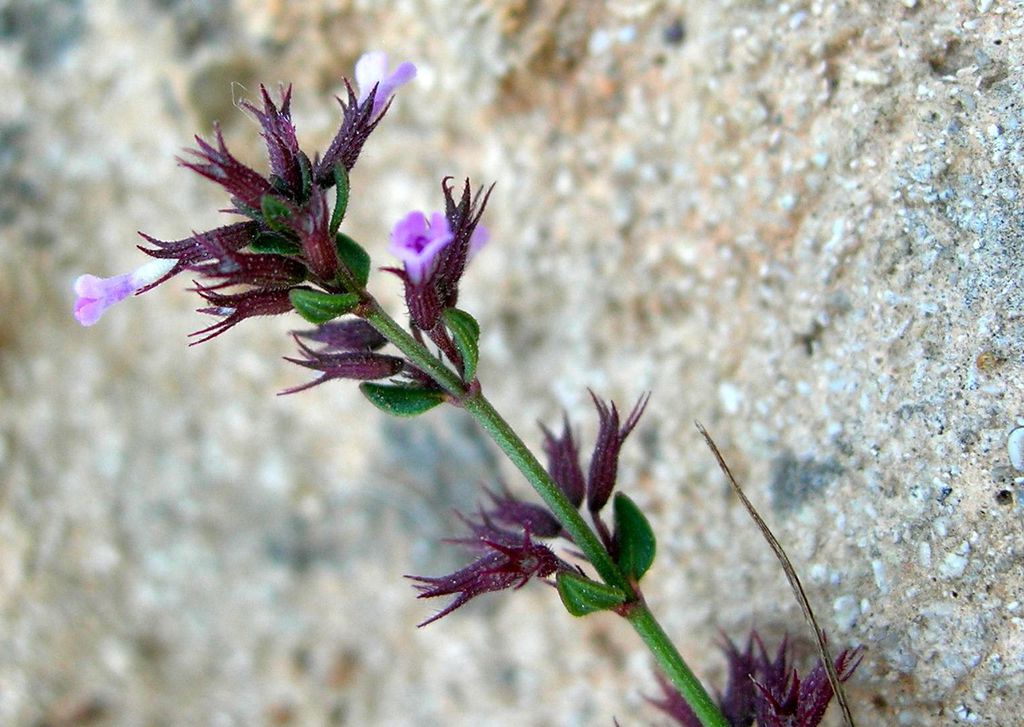 DESCRIPCIÓ DE LA PLANTA: Herba perenne, llenyosa a la base, una mica aromàtica. Fulles ovades, amb marge revolut i sovint amb el revers de color purpura. Flors blanques o rosades.