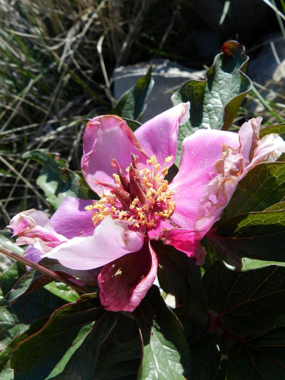 DESCRIPCIÓ DE LA PLANTA:Planta perenne. Fulles coriàcies de color verd fosc per davant i purpuris per darrera. Flors grans de color rosat