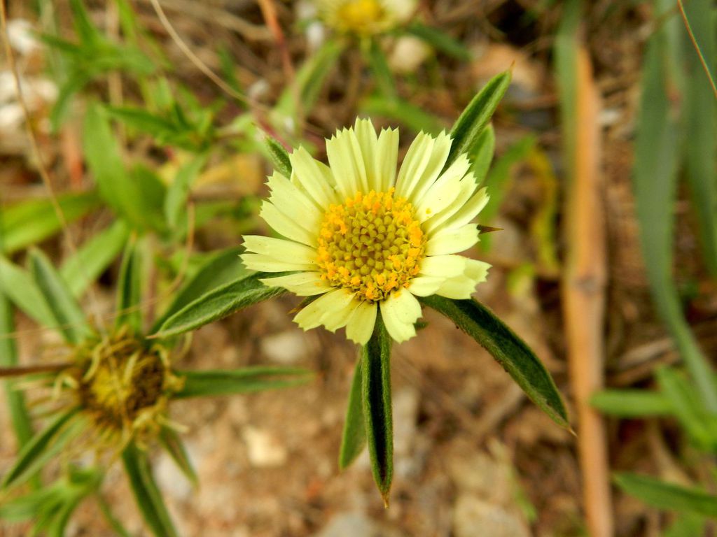 DESCRIPCIÓ DE LA PLANTA:Aquesta varietat mal coneguda de Pallenis spinosa, es diferencia de la varietat típica perquè és molt petita, amb els capítols amb flors de color groc-llimona, mentre que l’altre varietat les té groc-taronja. És un teròfit