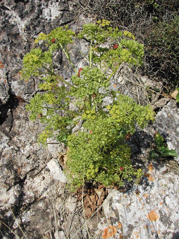 DESCRIPCIÓ DE LA PLANTA:Planta biennal, rizomatosa i glabra. Fulles lluents, denticulades, enteres o pinatisectes, amb el segments enters o lobulats. Flors grogues situades en umbel·les