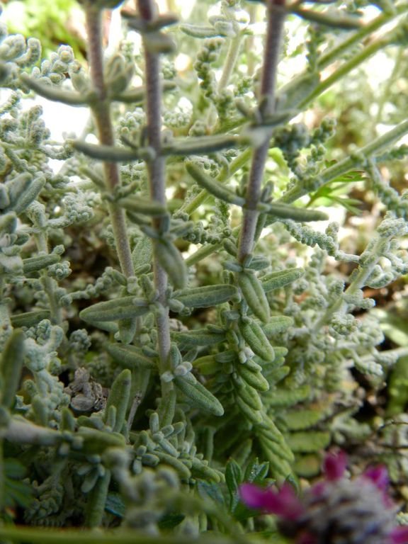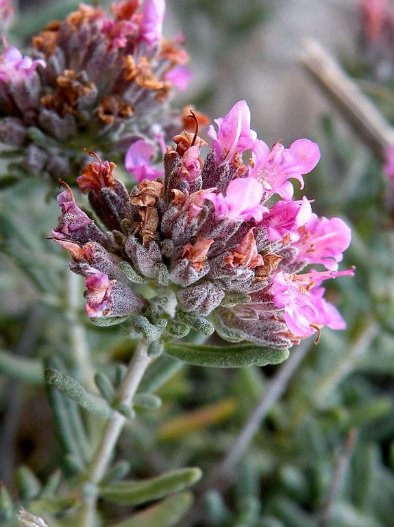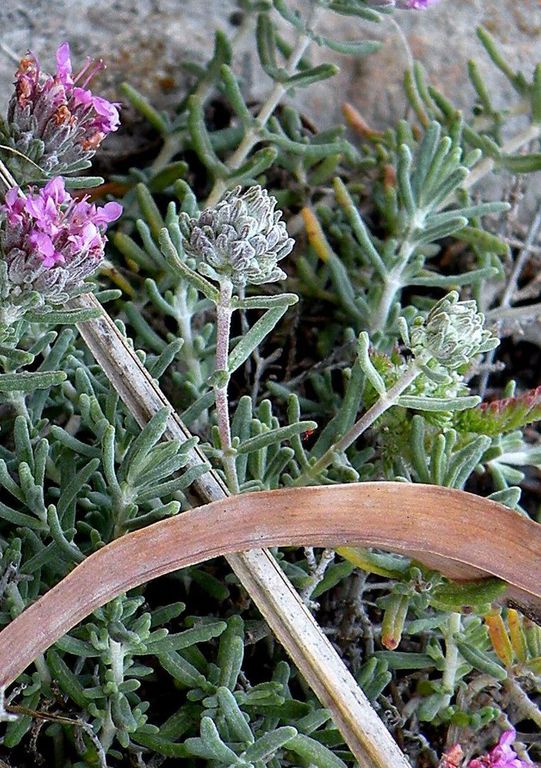 DESCRIPCIÓ DE LA PLANTA:Herba perenne, subarbustiva, poc aromàtica. Fulles oblongues, subsèssils, revolutes al marge, enteres o amb poques crenulacions. Flors petites, purpurines, disposades en glomèruls densos, la majoria a l’extrem de les tiges