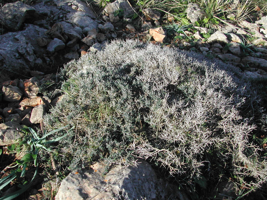 HABITAT: Sol créixer al llocs secs, pedregosos i batuts pel vent, generalment assolellats, encara que pot suportar qualsevol exposició. La trobam des de el nivell de la mar fins al cap de dalt del puig Major i quasi sempre acompanyada amb altres coixinets (Launaea cervicornis, astragalus balearicus, smilax aspera var. balearica)